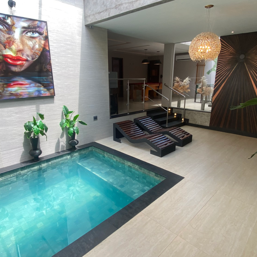 Todas nossas suítes têm wifi, ar-condicionado, água quente, TV, som, frigobar
